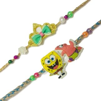 Multicolour Bow Rakhi and SpongeBob SquarePants theme Rakhi combo of 2 for kids and young boys Handmade by Ratvik Creations