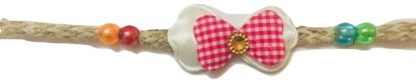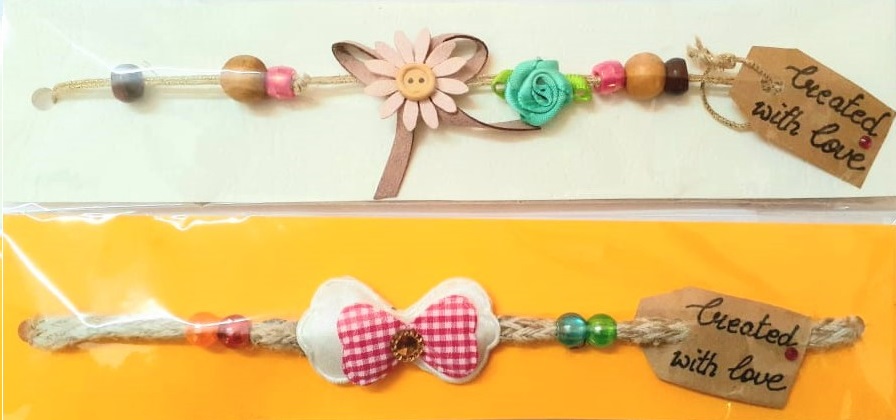 Handmade designer Rakhi made with materials from our mother land India for the beautiful occasion of Rakshabandhan symbolizing love for your brother and brother sister bonding. This Rakhi is handmade with a lot of love, care and thought to make your brother feel the love and care of his sister on the special day of Rakshabandhan.