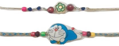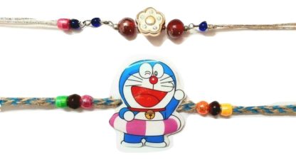 Doraemon Rakhi and Flower bead theme Rakhi combo of 2 for kids and young boys